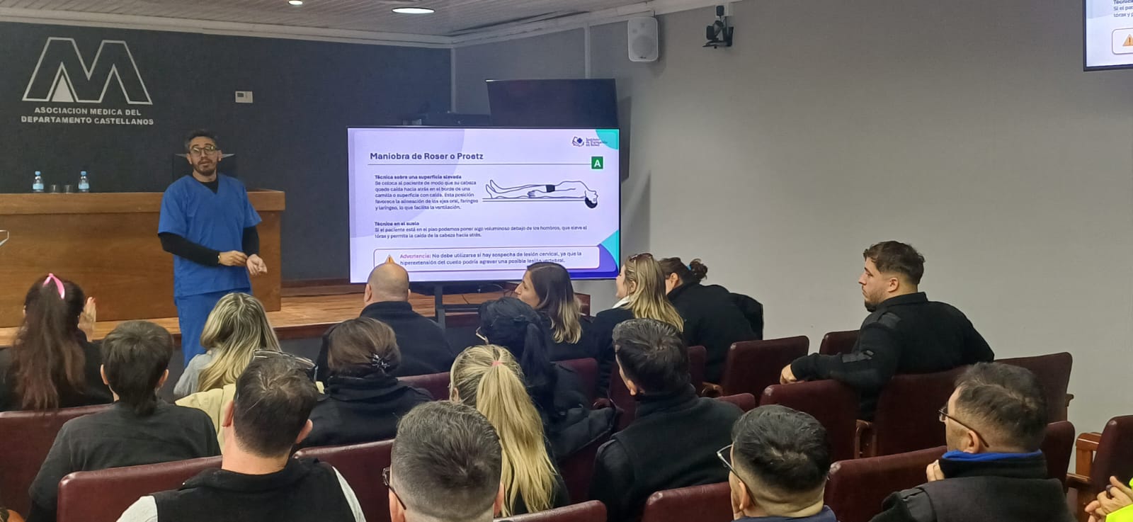 La capacitación estuvo a cargo del Dr. Jorge Avedano, médico emergentólogo de amplia trayectoria y del Tec. Cristian Matteos, enfermero y director de Emergencias Médicas por la Universidad Popular de Oncativo (Córdoba), con experiencia como capacitador de la Policía de Santa Fe y del Ministerio de Salud provincial.